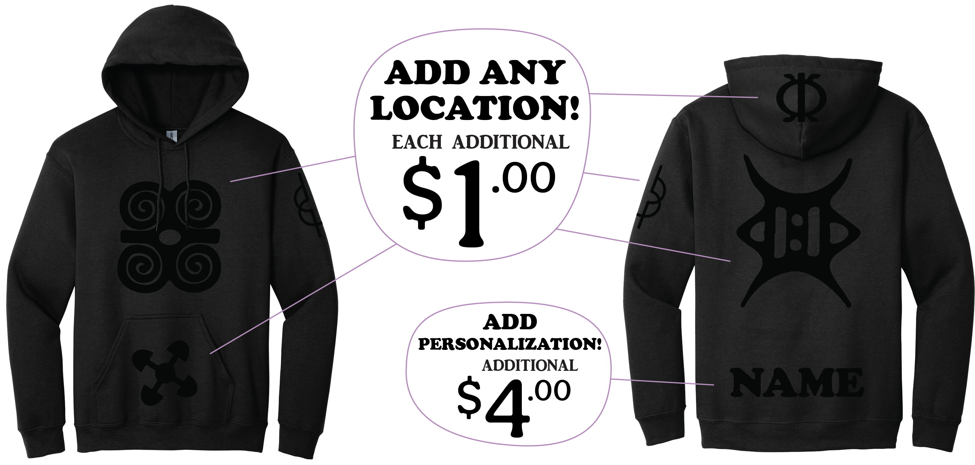 Print on pockets, sleeves, hoods, full-front chest, left or right chest, full back collar, bottom; almost nothing is off limits!